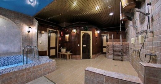 Банный комплекс «Терма» на Софийской улице - это возможность отдохнуть в уютном номере, где есть все необходимое для комфортного банного досуга. Гостиная с камином и мягкой мебелью, русская парилка на дровах и турецкий хаммам, просторный бассейн с водопадом, подсветкой и гейзером, купель и обливное ведро, уютные комнаты отдыха, караоке, TV.